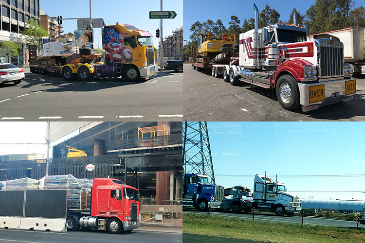 澳洲的大卡车久负盛名,因为铺设铁路不敷成本,内陆运输主要依靠巨无霸一般的卡车拉着数十米至数百米的货厢,有着“公路列车Road Train”的美誉。这次虽未深入内陆,在沿海城市也算有所初窥,尤其豪华美式大卡车,不但高速上时常见到,就连市区也一样,想必排放标准应该不低。品牌包括KENWORTH、MACK、FORD等等,长头、平头都有,拖挂少则1、2节,多到5、6节都很平常。