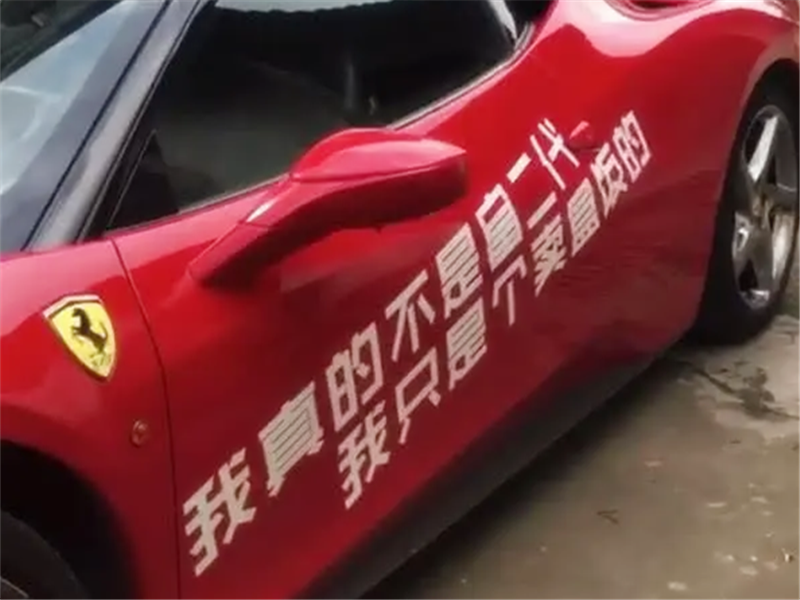 在很多的车型傍边超跑可谓是最让人感到热血沸腾的,它流通的身形、繁荣的动力、性感的音浪都让很多人为之信服,可是超跑的价格却又让很多人望而观止,究竟马马虎虎一台超跑就要几百万元上下,一般的顾客底子没有实力和财力把它开回家。而在最近有一位网友在路旁边偶遇了一台法拉利458,这台车上的两行字更是让人感到格外惊奇。
